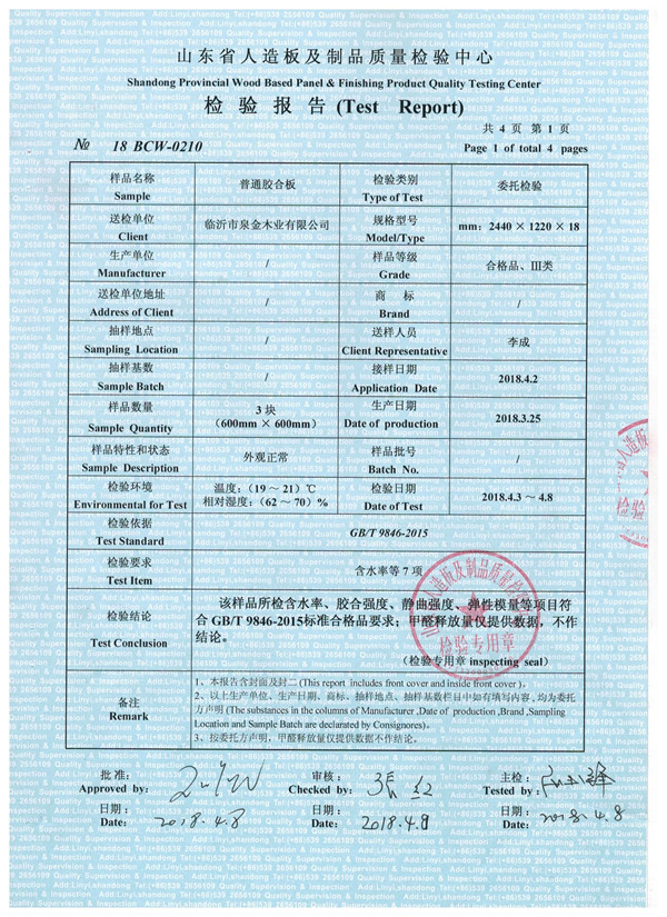>> 無醛多層板檢驗報告